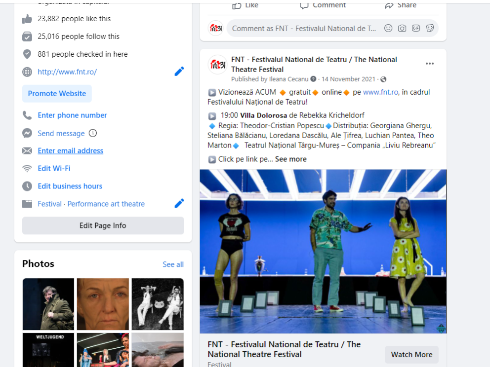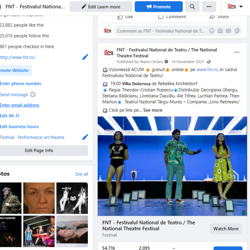Digital Heart are în portofoliu comunicarea online (website și Social Media - Facebook, Instagram) pentru ultimele nouă ediții ale: Festivalului Național de Teatru, Galei Premiilor UNITER, Galei Tânărului Actor HOP, Campaniei Artiștii pentru Artiști, evenimente culturale de talie națională.