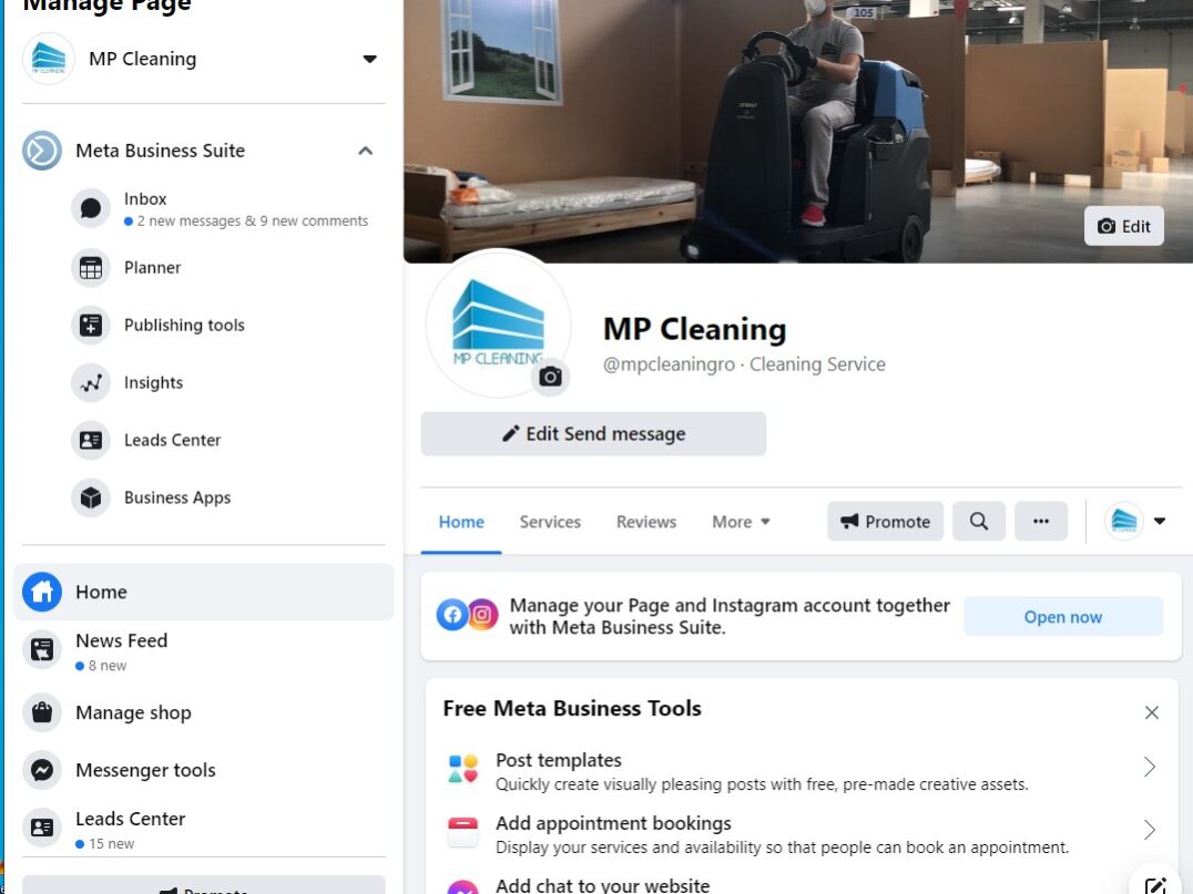 Colaborarea dintre Digital Heart și MP Cleaning a fost de la început una fructuoasă. Derulăm campanii de publicitate menite să adune cât mai multe lead-uri (prin Newsman, Facebook Leads), postăm și administrăm conturile de rețele sociale ale companiei (Facebook, Instagram), publicăm anunțuri prin intermediul grupurilor de Facebook pentru obținerea de feedback.